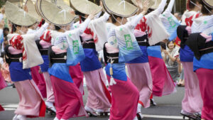 The city is renowned for its Awa Odori festival, one of the largest dance festivals in Japan, held annually in August. During the festival, groups of dancers, including professionals, amateurs, and tourists, perform traditional dances in the streets of Tokushima City.